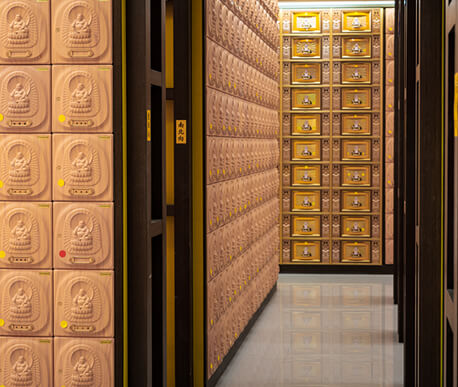 外觀:塔位採子母雙門,面版圖騰採高級琉璃雕塑。內部特別設計了蓮花及龍椅圖騰及往生咒經文,材質使用可耐用百年以上的鋁鎂鋅合金製作而成。可耐震、抗壓、防鏽、防腐蝕、防火、耐變形。
