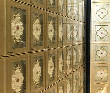 外觀:面板採雕花琉璃設計,搭配LED燈點綴,明亮素雅,展現高雅不凡。箱體選用鋁合金材質,承載約兩千公斤,具備防火、防震及耐酸鹼特性,穩固耐用。