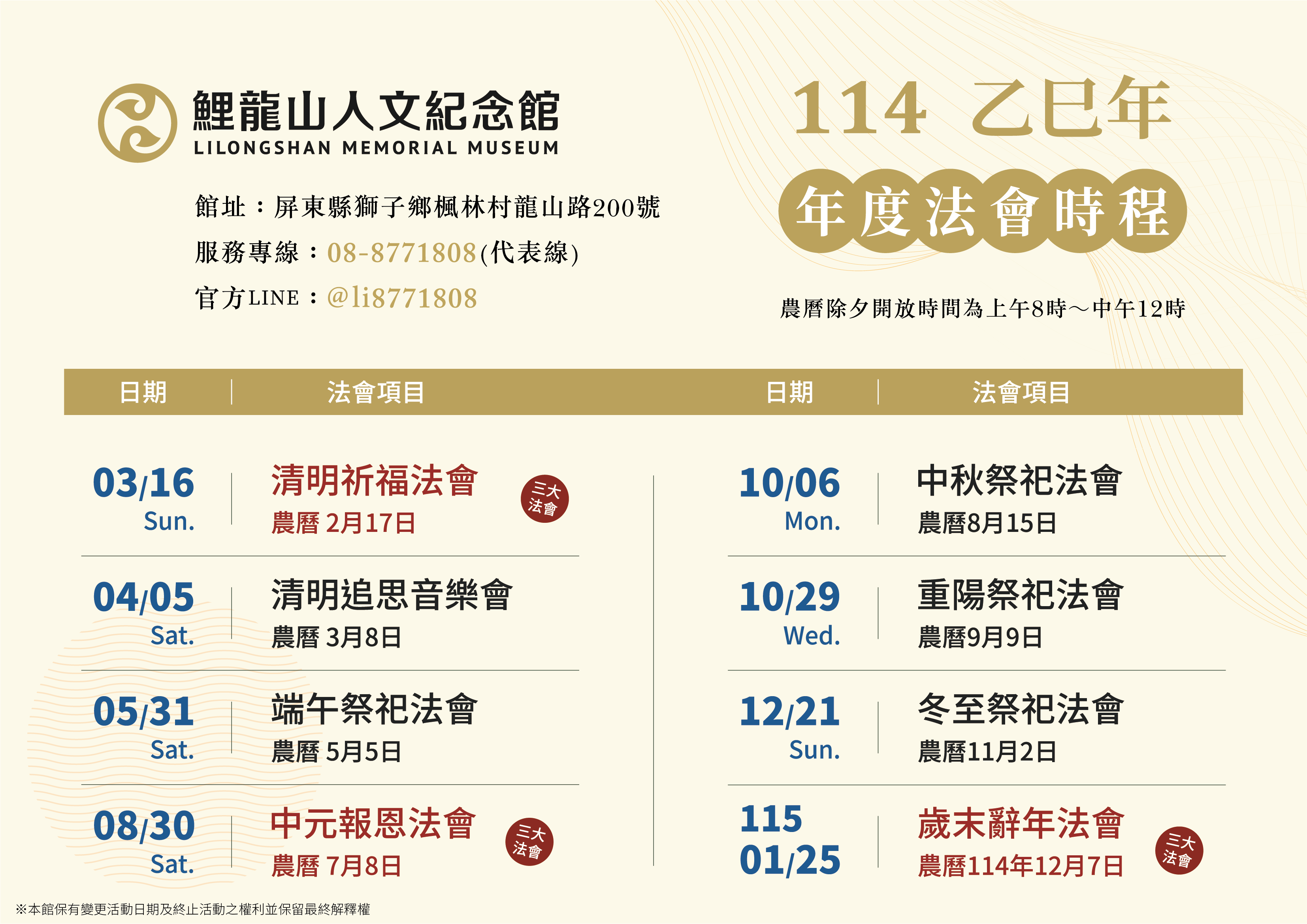 ★國曆115年01月25日 / 農曆114年12月07日(日)歲末年終辭年法會